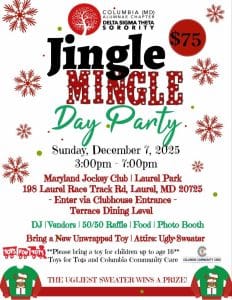The holiday season is almost here, and we’re celebrating in style! Join us for our Jingle Mingle Day Party — an afternoon of fellowship, fun, and holiday cheer with our Sorors, family, and friends.